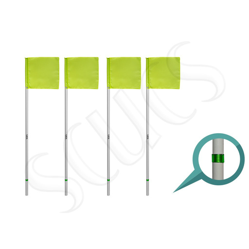 Visina: 170 cm Plastična cijev promjera 32 mm, žute boje Fleksibilna opruga omogućava savijanje direka pri udarcu Dolazi sa žutom ili crvenom zastavicom Set od 4 komada, idealno za označavanje uglova na fudbalskom terenu